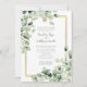 Sage Green Eucalyptus Leaves Gold Frame Wedding Invitation