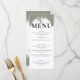 Gorgeous modern wedding menu in sage green and white with eucalyptus leaves (front and back). Easy to update - one side holds your your food options, the other holds a personal message and your names. Absolutely lovely design with wedding rings showing on the design with your names.