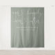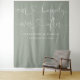 This elegant sage green heart script wedding photo booth backdrop can be personalised with your names and special date. Designed by Thisisnotme©
