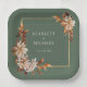 Sage Green Fall Paper Plate. Serve up style with these paper plates decorated in a stunning floral and leaf motif in classic fall tones. Burnt orange leaves, beige dahlias, and rust-coloured roses rest against a soft sage green background, creating a tablescape that’s as beautiful as it is practical. Make every bite part of your autumn vision—customise your set now.