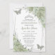 Sage Green Floral Butterflies Silver Quinceañera Invitation