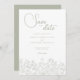 A beautiful and elegant Wedding Save The Date Invitation card featuring a wildflower floral line art design in a sage green colour theme. A stunning script font is used which works well and looks stylish and sophisticated. This piece is ready for you to customise with the details of your special day. Colours and fonts can be changed if you so wish or leave as shown here. Part of an ever-growing collection, please browse the Sage Green Floral Elegant Wildflower Wedding Suite for matching items.