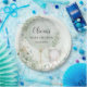 Cute baby gender neutral elephant round paper plates, featuring an adorable baby elephant, accompanied by a soft sage green roses adorned balloon. Matching items available in store. (c) Somerset Fine Paperie