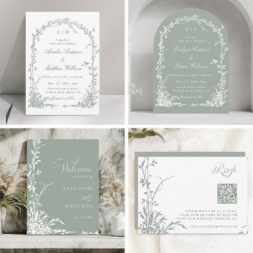 Sage Green Floral Garden Wedding QR Code Details Enclosure Card