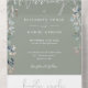 Sage Green Floral Greenery Script Wedding All In One Invitation