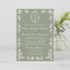 The soft sage green background paired with elegant ivory typography gives this invitation a romantic, vintage stationery feel reminiscent of historic garden estates, European manors, and traditional ballroom celebrations. Intricate floral line art borders and ornate crest details create a balanced composition that feels both sophisticated and effortlessly timeless.