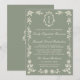 Sage Green Floral Old Money Monogram Crest Wedding Invitation