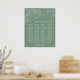 This elegant wedding table seating chart features a delicate floral ornamental design with flowers, birds and leaves on a sage green background. The text combines handwritten script and serif fonts for a stylish and modern look. Perfect for a winter or autumn fall wedding.