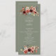 Set a timeless tone for your big day with this sage green floral wedding ceremony program. Featuring romantic watercolor roses in terracotta and blush tones, this double-sided design includes your ceremony outline on the front and the wedding party details on the back. Ideal for fall or garden weddings, this program blends classic elegance with rustic charm. Easily personalise all text to suit your celebration.