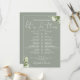 This stylish sage green greenery wedding schedule timeline can be personalised with your wedding details in chic typography. Designed by Thisisnotme©