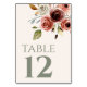 Guide your guests with elegance using this sage green floral wedding table number card. Featuring soft watercolor florals in rich blush, cream, and terracotta tones, this design blends romantic charm with modern sophistication. The bold table number is easy to read while the floral arrangement adds a refined touch to your reception decor. Perfect for spring, summer, or fall weddings with a botanical or garden-inspired theme. Customise with your table numbers or even guest names for a personalised touch.