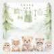 This sage green design was inspired by peaceful forest scenery and natural textures. Soft watercolor animals and calming green tones create a gentle, heartfelt way to share appreciation after a baby shower filled with warmth, love, and meaningful moments.