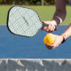This modern pickleball paddle design features a sage green geometric pattern, with a text line for your name or initial in bold black text for a look that is simple and stylish, yet trendy. Makes the perfect gift for Christmas, birthday, Mother's Day, Father's Day, graduation, and more.