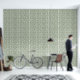 An elegant sage green geometric repeated pattern peel and stick wallpaper wall treatment, to modernise any room. Perfect when you live in a rental apartment that needs your personal style and touches of design to make things pop. Peel and stick wallpaper is one of the best DIY hacks for apartment dwellers to give them more control over their home decor style! Try it as an accent wall. Comes in smooth and textured. Get the textured for bumpy textured walls, and smooth or textured for smooth walls. If you need matching pillows or ceramic tiles, please message me to expand your matching products for this design, to create balance with your room patterns and decor.
