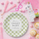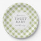 Sage Green Gingham Plaid Sweet Baby Paper Plate
