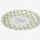 A charming detail for any baby shower, these custom paper plates feature a soft sage green and white gingham plaid pattern and easy to personalise text for a party detail that has the charm of country cottage affair.