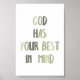 Sage green God has your best in mind poster