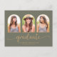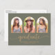 Sage Green Gold Arch 3 Photo Graduation Announcement Postcard