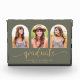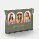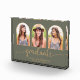 Modern Boho Arch Minimalist Sage Green Gold Photo Graduation Photo Block featuring 3 of your favourite photos and our stunning chic boho typography and geometric arch in dusty sage green and saffron yellow gold. Makes a great gift or keepsake! Please contact us at cedarandstring@gmail.com if you need assistance with the design or matching products.