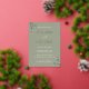 Crisp white typography combined with subtle gold foil accents brings a luxurious touch to this invitation, making it ideal for garden weddings, outdoor ceremonies, or classic celebrations. This sage green and gold wedding invitation beautifully reflects a refined style that’s both simple and sophisticated.