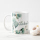 Modern eucalyptus greenery graduation coffee mug with delicate gold accents, designed to add a cohesive and stylish touch to your graduation accessories. A versatile and customisable accent for high school or college graduates' gifts.