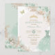 The perfect invitation for your daughter's quinceañera is finally here! This chic and lovely quinceañera invitation features soft sage green roses, an elegant princess ball gown, a sparkly gold tiara and tropical boho elements. Click the "customise further" button if you wish to re-arrange and format the style and placement of the text.