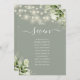 These elegant sage green greenery floral string lights wedding table numbers can be personalised with your guests' seating plan set in chic typography. The cards are printed on the front and back (double-sided). Designed by Thisisnotme©