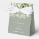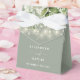 Elegant sage green floral greenery string lights wedding favour box personalised with your names, monogram initials, wedding date and special message. Designed by Thisisnotme©