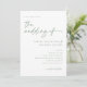 This elegant wedding invitation features soft sage green handwritten calligraphy paired with a clean, minimalist layout. The design highlights “the wedding of” in a modern script, balanced with classic serif details for timeless style. Perfect for couples planning a romantic, contemporary celebration. Printed on premium paper with plenty of space for your wedding details, this fresh sage design sets the tone for a chic and modern event.