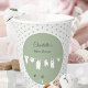 Make your celebration special with these charming minimalist paper cups. A pattern of tiny sage green hearts forms the background for a cute clothesline graphic featuring baby clothes and a sweet teddy bear, adding a modern boho touch. These cups are a perfect match for a gender-neutral baby shower and are part of the Minimalist Clothesline Baby Shower collection, making it easy to create a perfectly coordinated and unforgettable event.