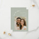 Announce your special day in style with this modern Sage Green colored Save the Date card. Featuring your favorite photo framed by a minimalist ivory line border, it perfectly blends timeless elegance with a personal touch. The handwritten script adds a romantic detail, while the clean layout keeps the design contemporary and easy to customize.