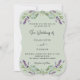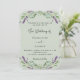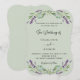 A sage green background decorated with lavender flowers and eucalyptus greenery. Personalise and your names and details.
