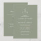 Sage Green Leaf Monogram QR Code Wedding Invitation