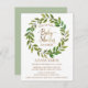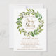 Sage Green Leaf Wreath White Gold Baby Shower Invitation