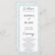 On the back of the program, you will find the wedding party list. The design of the wedding program is crisp and clean, ensuring that the focus remains on the important details of the ceremony. This wedding program will help guests follow the order of events and celebrate the couple's special day in style.