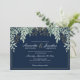Sage Green Leaves on Dark Blue | Wedding Invitation