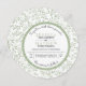 Sage green leaves pattern round wedding invitation. The focus of this lovely wedding invite is a floral pattern made of leaves in green and a white frame with sage green scalloped outline that holds your wording.