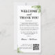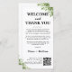 sage green welcome QR code, leaves thank you QR card, digital welcome card wedding, QR code guest information, botanical welcome notes, rustic QR thank you card, personalised welcome card, wedding welcome bag insert, sage leaves event info, thank you QR code