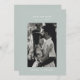 Elegant sage green photo save the date card with a minimalist line art leaf monogram design on the reverse side
