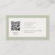 Promote your massage therapist services with this modern sage green business card featuring a QR code for quick access to appointments, contact info, or service menus. The soft sage tone evokes balance and serenity, perfect for spas, wellness studios, and holistic therapists. Minimalist typography and spacious layout ensure a professional, calming presentation that prints beautifully.