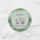 Sage green metallic background with soft sage green centre with faux rhinestone tiara. Green faux metallic. A perfect decoration for all your celebration tables.