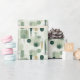 A gorgeous abstract mid century modern theme. Sage greens make up most of the colours in this striking design - with splashes of darker and muted mustard. A very pretty design for wrapping paper.