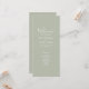 This simply designed and gorgeous Wedding Day Program card features an elegant, modern and minimal typographical design with a sage green colour theme. Ready for you to customise with the details of your Wedding Day ceremony. Please browse the Sage Green Elegant Minimal Wedding Suite for matching stationery items.