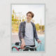 Celebrate your graduate’s milestone with this modern photo graduation announcement card, designed in a neutral sage and soft gray palette that’s ideal for male high school or college graduates. The clean layout highlights a full-photo front with elegant script accents, while the back features a minimalist framed photo for a polished, contemporary finish.