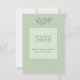Keep your wedding stationery coordinated with this sage green minimal wedding RSVP card. Featuring a clean, elegant layout and soft romantic color, it’s perfect for modern and timeless celebrations. Easily edit to collect guest responses in a stylish and organized way.