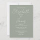 This sage green minimalist elegant script wedding invitation can be personalised with your information in chic typography with your wedding website details and your QR code on the reverse. Designed by Thisisnotme©