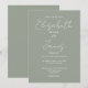 This sage green minimalist elegant script wedding invitation can be personalised with your information in chic typography. Designed by Thisisnotme©