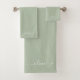 Sage Green Minimalist Modern Monogram Elegant Bath Towel Set