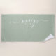 Sage Green Minimalist Modern Monogram Elegant Beach Towel
