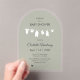 Set a serene and stylish tone for your baby shower with these charming minimalist invitations. This elegant arch-shaped acrylic card features a semi-translucent sage green background and a clear, transparent border. An adorable clothesline with little baby outfits and a delicate heart graphic makes a beautiful first impression. This unique invitation is part of the Minimalist Clothesline Baby Shower collection, making it easy to find coordinating products and complete your theme.